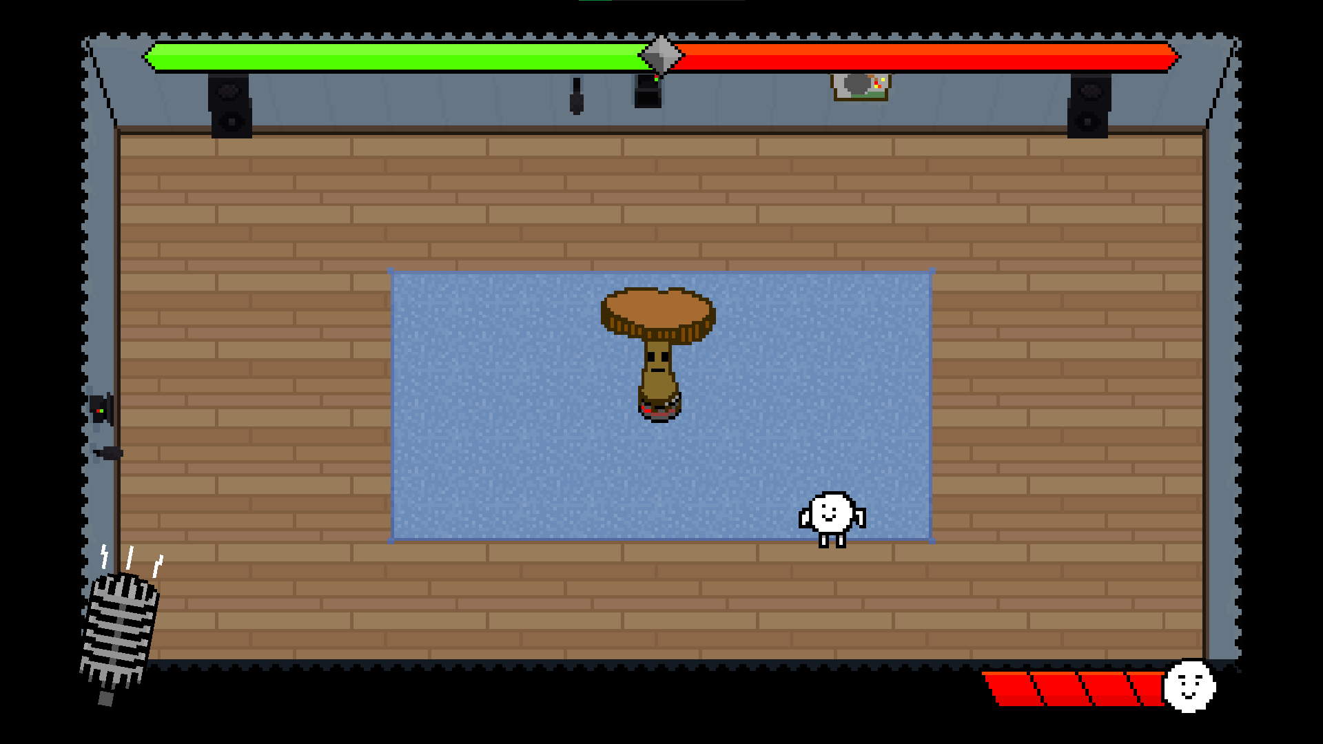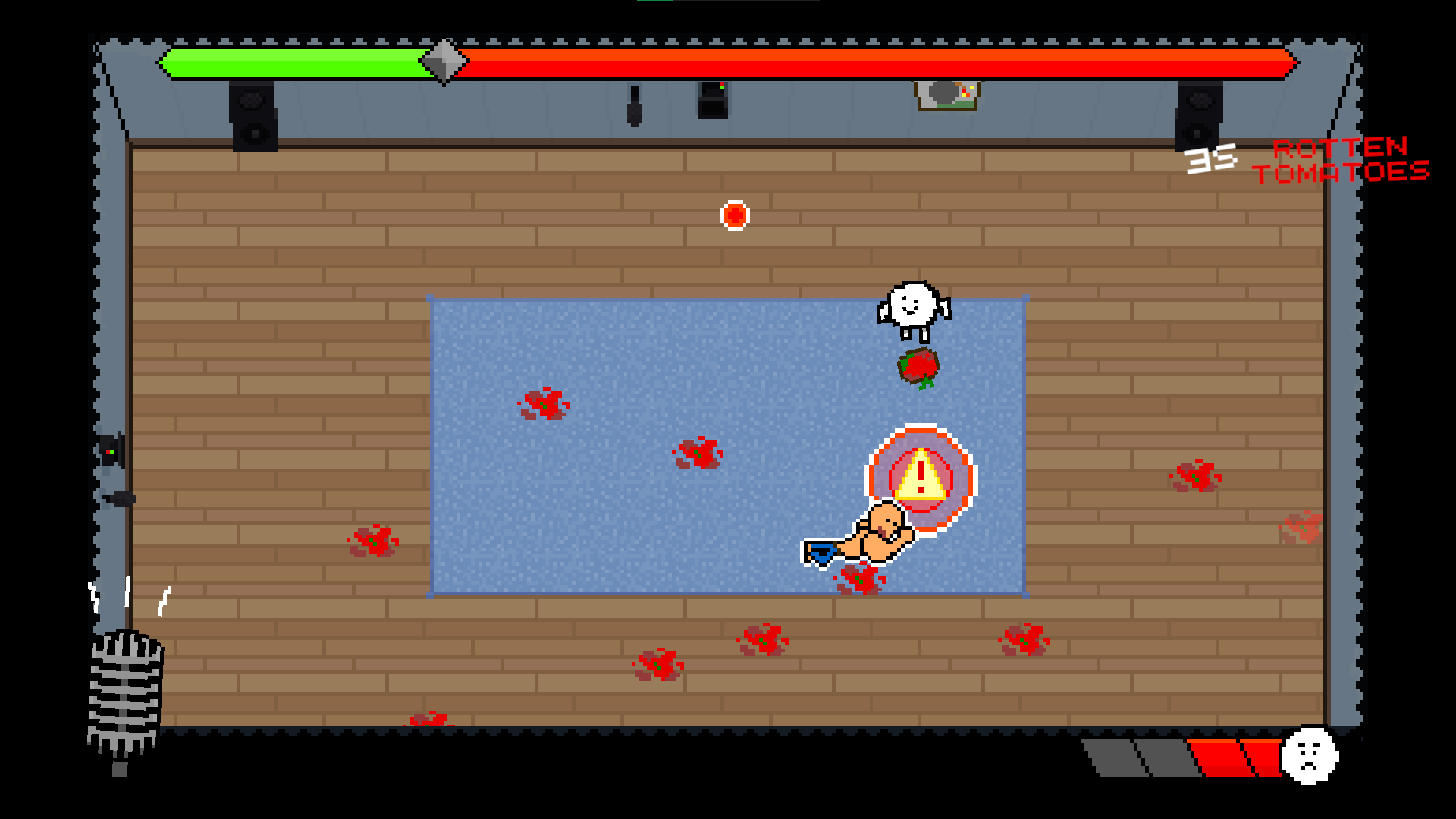 You will fight one of three bosses at a time, while trying to get the audience to like you as much as possible to make things easier for yourself. Dodge, jump and push buttons as you don't play to die, but to win!